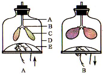 28.下图模拟膈肌的运动,依图回答下列问题.