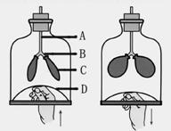 下图为模拟膈肌运动的模型,请依图回答有关问题: