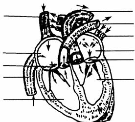 4、下图是心脏的解剖图,请同学们填写心脏中各个腔的名称,以及与各个腔相连的血管的名称,并回答问题:(15分)