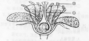 (2)在这朵花中最主要的结构是[ ] 和[ ] ,前者产生花粉,后者 里有胚珠, 将来发育成种子。