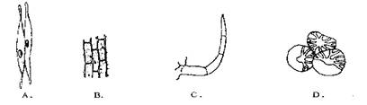 38.以下四种细胞属于洋葱表皮细胞的是 ( )
