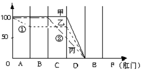 1、下图表示食物通过人体消化道时,淀粉、蛋白质和脂肪被化学消化的程度,字母代表组成消化道顺序排列的各个器官,甲是实线、乙是短虚线、丙是长虚线。据图示回答:(括号内填写字母)((1)6分、 (2)2分、共8分)
