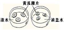 泡在清水和浓盐水中(如右图所示),则哪种液体中的黄瓜薄片会失水变软( )