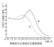 21.右下图是某地男女生身高生长速度曲线,从图