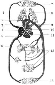 (4)体循环终止部位是[ ] ,此时血液变成了 血。