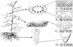 10.下图中植物体的主要组织及分布,表示不正确的是( )