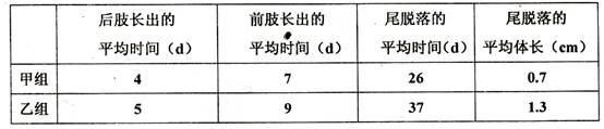 ②甲组每隔一天加甲状腺激素5mg,持续5次,乙组不加___________,其他培养条