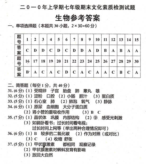37.(5分)某生物小组的同学要探究“甲状腺激素对蝌蚪发育的影响”,做了以下实验。中考资源网