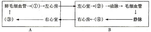 (3)经过A循环后,血液由___________血变成___________血,经过B循环后,血液由__________血变成___________血。