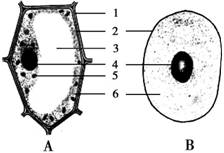 (6)在显微镜下观察到的人口腔上皮细胞的结构图应该是上图中的 (填A或B)。