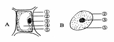 (1)图A是 细胞的结构,图B是 细胞的结构。
