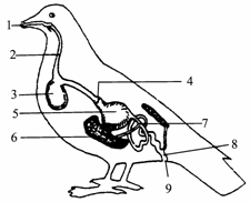 (2)通过观察家鸽的消化系统,我们可以得知家鸽的胃包括[]__和[]__两部分,而[]__只起到暂时贮存和软化食物的作用。家鸽的[]__短,便于粪便的及时排出,减轻了自身重量,利于飞行。
