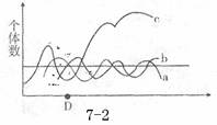 图7-2表示一个生态系统中的树林、植食性昆虫和食虫鸟数量发生变化时的相对曲线,回答下列问题: