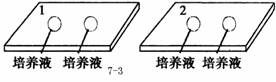 为探究某物质对草履虫的刺激是有利还是有害,李明同学在两片载玻片上都滴有两滴相同的草履虫培养液(如图7-3所示),用放大镜观察培养液中的草履虫,用滴管在1、2号载玻片的两个液滴之间轻轻地画一下,请回答下列问题: