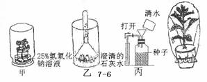 34.图7-5是某校生物课题小组在进行植物的光合作用、呼吸作用和蒸腾作用的探究实验时,使用的部分器材。请分析回答: