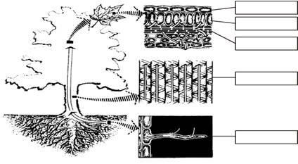 3.下图表示植物吸水到失水的全过程。请标出根毛、导管、叶脉、叶肉、表皮的位置。