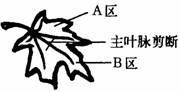 小强将一株绿色植物在黑暗中放置了24小时,然后选择其中的一片绿叶进行研究。先剪断叶片的主叶脉(如右图所示),再将绿色植物放在阳光下照射2-4小时,最后检测发现B区没有产生淀粉。原因是该部分区域缺少光合作用所需要的
