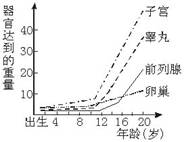 25.(12分)下图表示的是男女一部分性器官的发育趋势,据图回答。