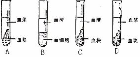 9.将新鲜血液分别放入ABCD四支试管,AB两支试管放有抗凝剂,下图是静置24小时后的结果,正确的是( )