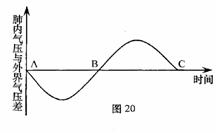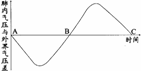 (2)在坐标系中的B点,肺内气压与大气压的值 。