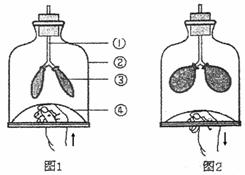 (2)图2模拟的是人体在 时膈肌所处的运动状态,此时由于膈肌的收缩,胸廓的 径增大。