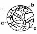 10.右图是某同学用显微镜观察小鱼尾鳍内血液流动时所观察到的情况。下列各项中,能正确表示动脉、静脉和毛细血管的是