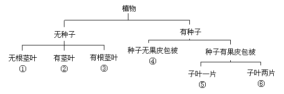 (1)请你协助兴趣小组同学,按下列分类表解逐一分类,写出下表中③、④、⑥对应的植物名称。 ③ ④ ⑥