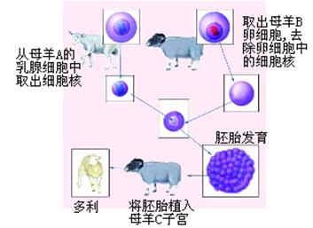 (2)多利羊在形态特征等方面几乎和母羊A一模一样。