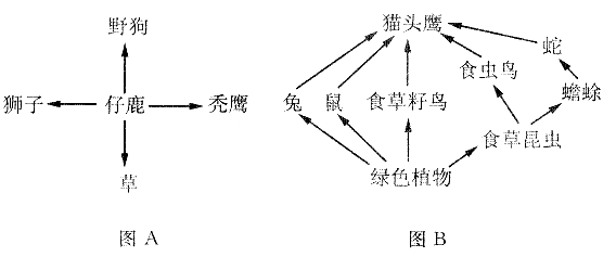7、图A是一个非洲草原生态系统食物网示意图,而图B是一个温带草原生态系统食物网示意图,据图回答: