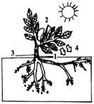3)图中的3表示叶在光合作用过程中制造的___________,通过韧皮部中的_______将光合作用产生的______运输到根。