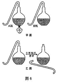 2.(2008福州)图6是巴斯德著名的“鹅颈瓶”实验示意图。A瓶、B瓶内都装有肉汤,甲图表示A瓶煮沸,B瓶不作处理。一段时间后,其中一瓶仍然保鲜,另一瓶变质;接着,将保鲜那瓶的瓶颈打断(如乙图),数日后,瓶中肉汤也变质。请回答: