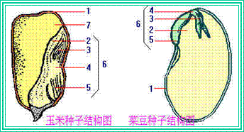(2)菜豆种子和玉米种子结构的相同点是都有[ ]_________和[ ]_________,而且胚都由[ ]_________、[ ]_________、[ ]_________、[ ]_________组成。不同点是菜豆种子的营养物质贮藏在[ ]_________,而玉米种子营养物质贮藏在[ ]_________,玉米种子中有_________,菜豆种子中没有_________。