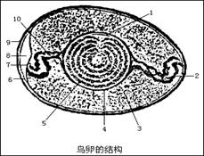 3、鸟卵的结构模式图,看图回答下列问题: