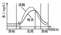 11.右图是某科研小组研究某植物吸水速率与蒸腾速率关系时绘制的曲线图,图中两曲线表示一天内光照和黑暗环境下吸水速率与蒸腾作用速率的变化过程,请据图分析,下列说法错误的是
