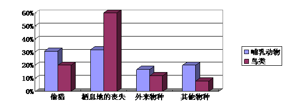 (2)鸟类受威胁的主要原因是什么?