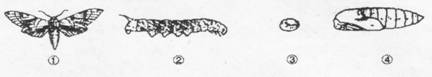 4、豆天蛾是一种危害大豆的害虫,下面是它发育过程中的4个时期的形态图。请据图回答: