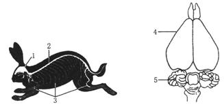32.下图是家兔的神经系统及家兔脑的结构图,据图写出有关数字所指部位的名称: