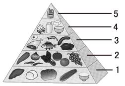 (5分)为了做到合理营养,我国营养学家将食物分成五类,并形象地设计成“平衡膳食宝塔”(如右图),请结合图回答问题: