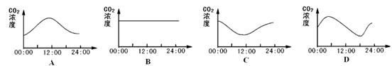 9、一生长着大量绿藻的池塘,下列坐标图表示一天内池水中二氧化碳浓度的变化情况,正确的是:(晴天日出、日落时间分别为6:00和18:00)