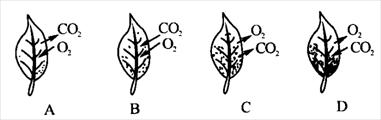 10.下图表示一昼夜中,植物叶片上CO2(二氧化碳)、O2(氧)的进出情况,你认为哪一图标的现象最可能发生在夜晚?