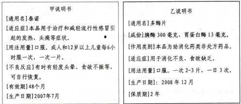 (2)及时治疗躯体疾病是人维护躯体健康的重要环节,治病通常离不开用药。小李同学最近得了流感,发热头痛,在自备药箱中找到两种药,你认为他能服用哪一种药?