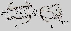 A.具B牙齿结构的动物的盲肠退化 B.具A牙齿结构的动物的盲肠退化