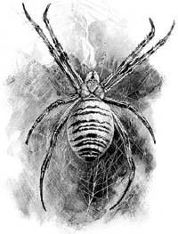 调查。他们在两棵树之间发现了一张很大的蜘蛛网,一只大蜘蛛正趴在它那几乎无形的蛛网上,虎视眈眈地等待着。正在这时,一只苍蝇不小心落入了蛛网中。黏黏的蛛丝缠住了苍蝇,蜘蛛迅速朝它奔去,眨眼间,苍蝇成了蜘蛛的一顿美餐。小敏他们都看呆了,蜘蛛好厉害啊!