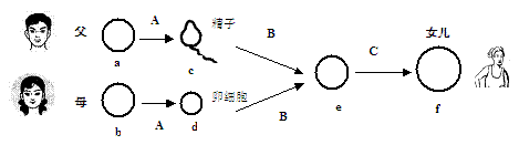 (3)B过程叫_________ ___,形成的e细胞叫____ __,染色体数为___ ___条。