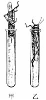 (3)蝗虫的呼吸器官究竟在哪个部位?有人做过这样的实验:取两只活蝗虫甲与乙,分别放进两个盛满水的试管里,把蝗虫甲的头部浸没在水里,把蝗虫乙的胸腹部完全浸没在水里,而只露出头部(如右图所示),实验结果:甲活着,乙死亡。请你根据实验现象补充完整下面的假设及实验设计。