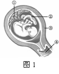 ⑴胎儿在母体的③ 里发育,胎儿所获得的