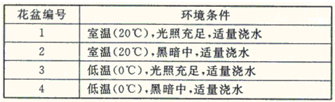 ③将这4个花盆分别放在不同的环境中(见表),进行观察并记录。