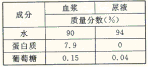 (2)近年来,碳酸类和果汁类等软饮料备受人们喜爱。 小明妈妈也酷爱软饮料,右表是她血浆、尿液成分化验的部分数据,请据表回答:
