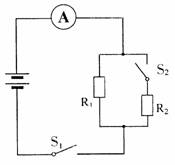 如图所示,已知电阻R1=20欧,R2=30欧,当开关S1闭合,S2断开时,电流表A的示数为0.3安。求: