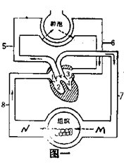 6、下图是血液循环和气体交换示意图,请据图回答: